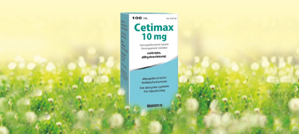 Cetimax 10 mg on setiritsiiniä sisältävä antihistamiini kausiluonteiseen ja ympärivuotiseen allergiseen nuhaan liittyvien silmä- ja nenäoireiden hoitoon. Cetimax on laktoositon, Suomessa kehitetty ja valmistettu lääkevalmiste. Tutustu Cetimaxiin ja allergian hoitoon osoitteessa www.cetimax.fi