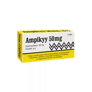 Ampikyyn vaikuttavana aineena on hydrokortisoni. Valmistetta käytetään ensiapuna kyykäärmeenpureman, ampiaisen- ja mehiläisenpiston aiheuttamiin reaktioihin. Annostus aikuisille ja yli 15-vuotiaille lapsille on 3 tablettia, 0–5-vuotiaille lapsille 1 tabletti ja 5–15-vuotiaille lapsille 2 tablettia. Ei pitkäaikaiseen käyttöön eikä tavallisten allergiaoireiden hoitoon. Tutustu huolellisesti pakkausselosteeseen (05/2019).